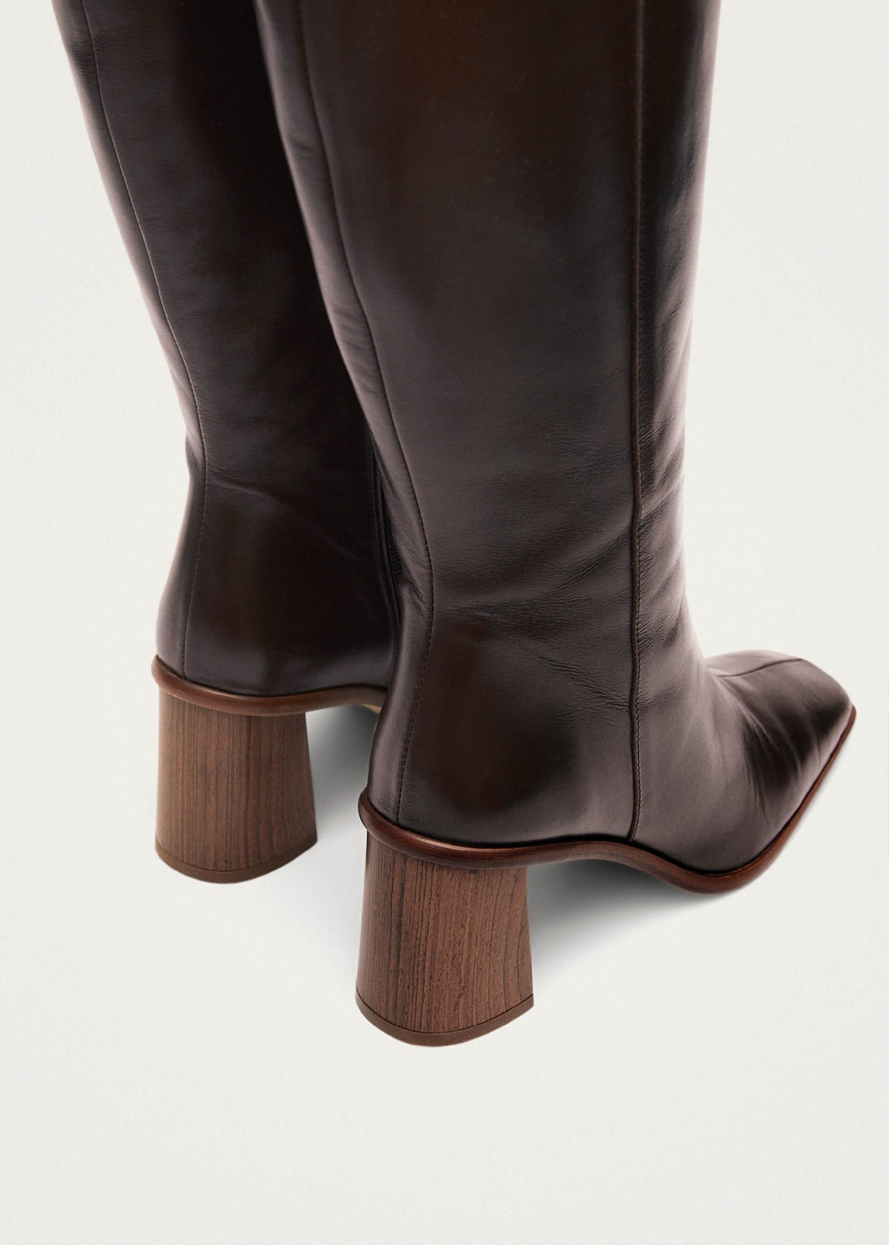 A classic in our collection. the East boots are shaped from brown leather to a knee-high silhouette. featuring a squared toe and block heel. and benefiting from a functional side-zip fastening